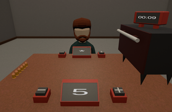 Biscuit Roulette is a fast guessing game with a deadly twist. You have 25 seconds to guess how many chocolate crumbs are on the cookie. Both you and the NPC make your guess and whoever is closer survives...